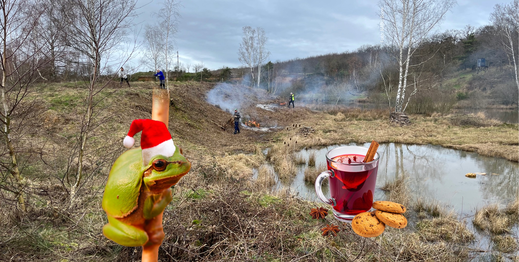 Ganz so wie in den letzten Jahren, möchten wir gemeinsam mit unseren Freunden und Unterstützern das Naturschutzjahr ausklingen lassen. Deshalb laden wir ganz herzlich zur Adventsaktion am 13.12.2025 im NSG Kiesgrube Dünstekoven ein. Nachdem wir das Naturschutzgebiet für den Jahreswechsel aufgeräumt haben und "saubere" Biotope hinterlassen haben, wollen wir bei Plätzchen, Kaffee und Glühwein am warmen Ofen in der Naturschule die praktischen Arbeiten für dieses Jahr abschließen und in die Gemütlichkeit und Ruhe der Advents- und Weihnachtszeit eintauchen. Wir freuen uns auf viele aktive Helfer für die Biotoppflege ebenso wie auch Gäste zum gemütlichen Teil am Nachmittag.